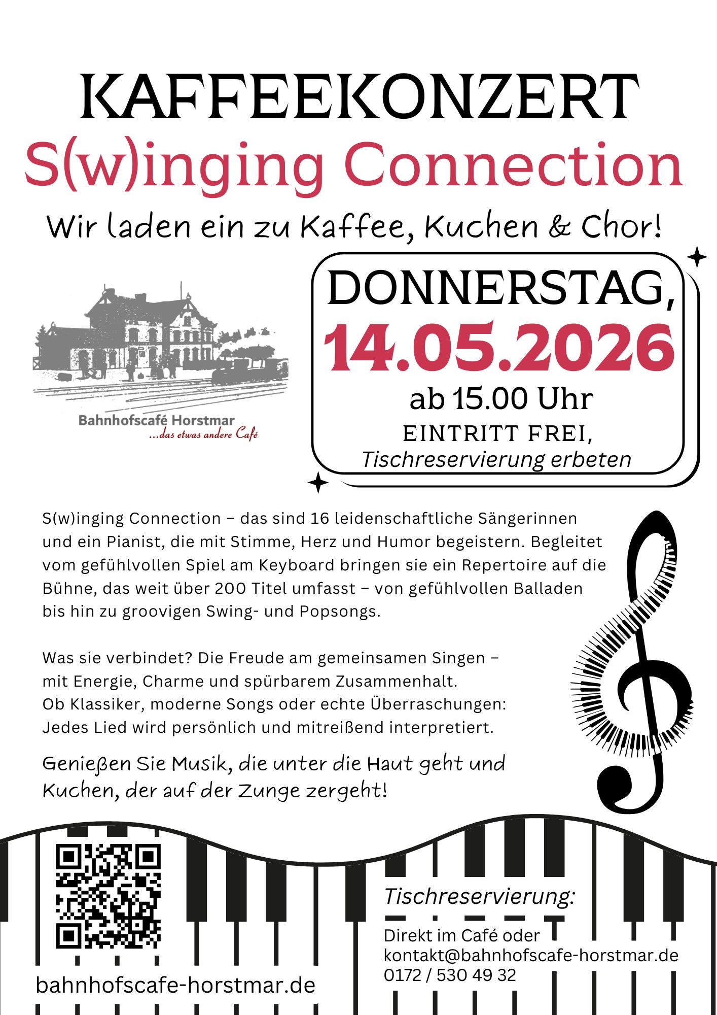 Stimmungsvolles Kaffee-Konzert am Vatertag! S(w)inging Connection – das sind 16 leidenschaftliche Sängerinnen und ein Pianist, die mit Stimme, Herz und…